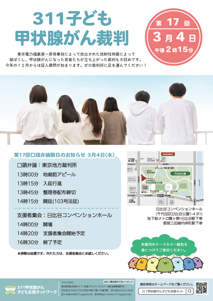 次回の第17回口頭弁論期日は来年の3月4日(水)に開かれます。第18回口頭弁論は6月17日、第19回口頭弁論は9月9日です。(2025.12.20更新)
