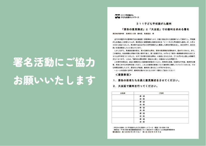 そこで、「311甲状腺がん子ども支援ネットワーク」では、